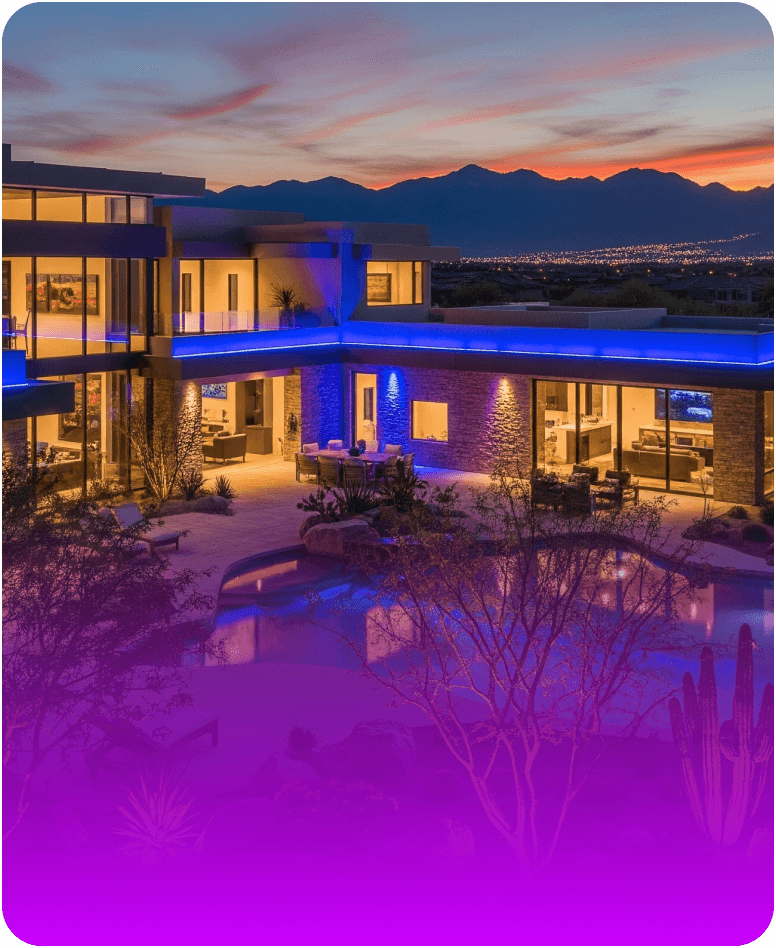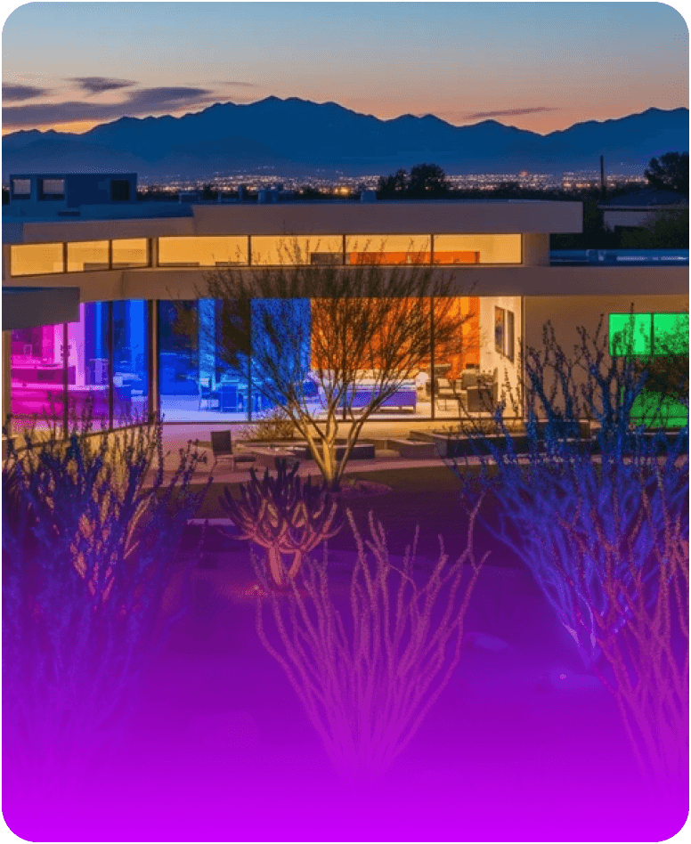 Every system we design is fully customized, not off-the-shelf. Whether you want to illuminate the front of your home, the backyard, or the interior spaces, our solutions are fully expandable. They form the foundation for everything from simple automation to the most sophisticated, lifestyle-driven lighting experiences.