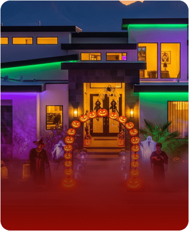 Our holiday lighting solutions are designed to help you celebrate in style — without the stress. Whether it’s a festive display for Christmas, spooky vibes for Halloween, patriotic tones for the Fourth of July, or simply a warm winter glow, our smart systems let you change colors, effects, and schedules with ease — no ladders, no tangled wires, just pure joy at the tap of a button.